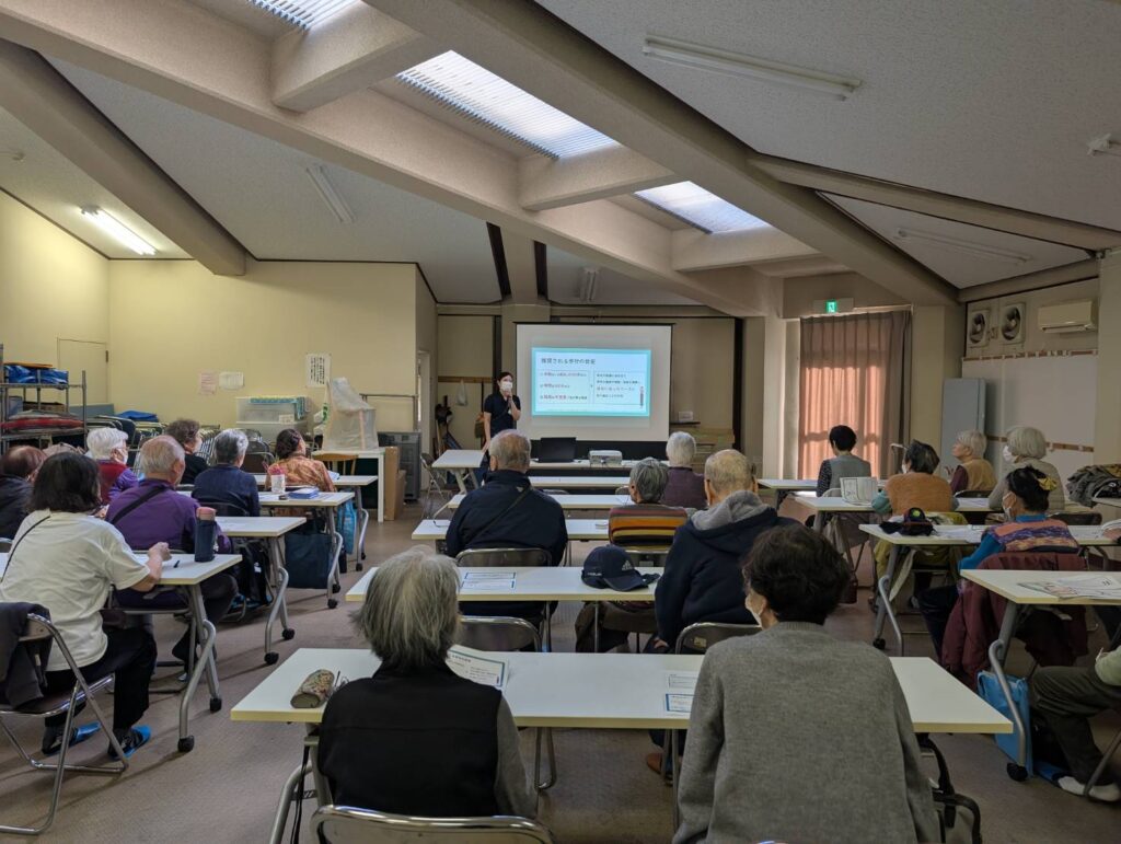 11月17日にサロンド南砂(JKK南砂2丁目公社住宅 4号棟大ホール)で開催されたウォーキング教室に当院から理学療法士2名が参加させていただきました。